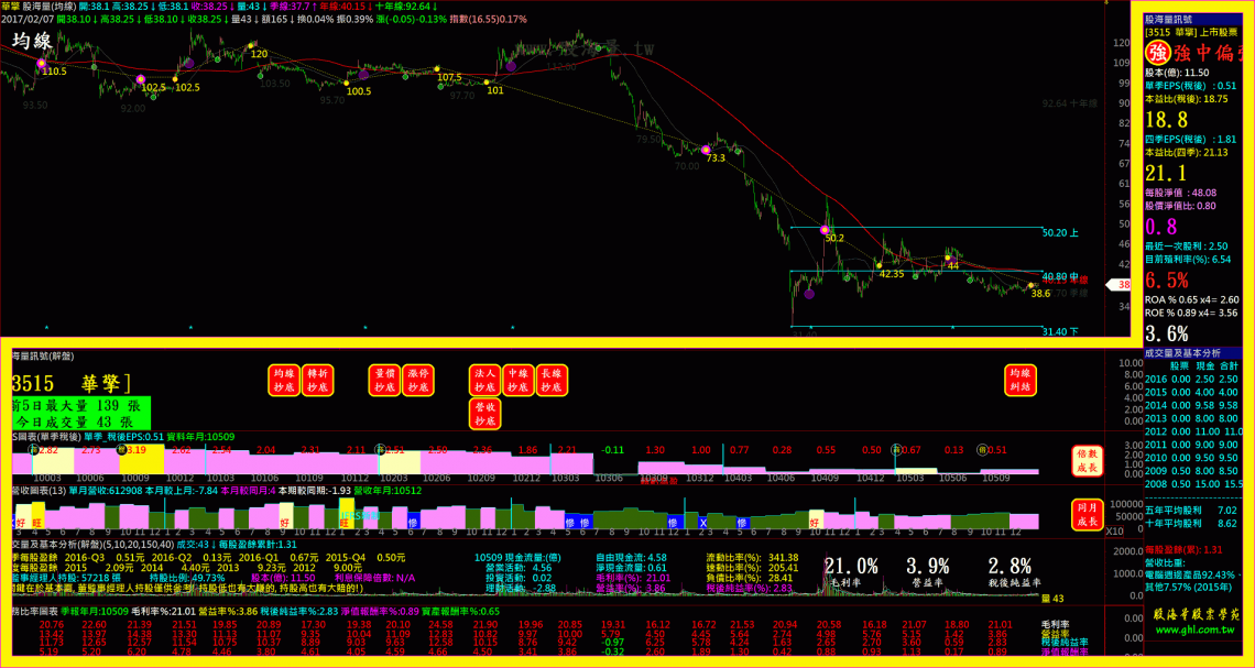 一目了然,完整結合基本面、技術面與籌碼面的情報於一張圖表上,幫助你輕輕鬆鬆,瞬間判讀個股的好壞與強弱。重要的關鍵訊號都會在情報區以大字提示,讓你即時掌握,絕不錯過。